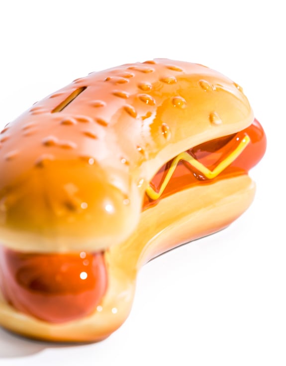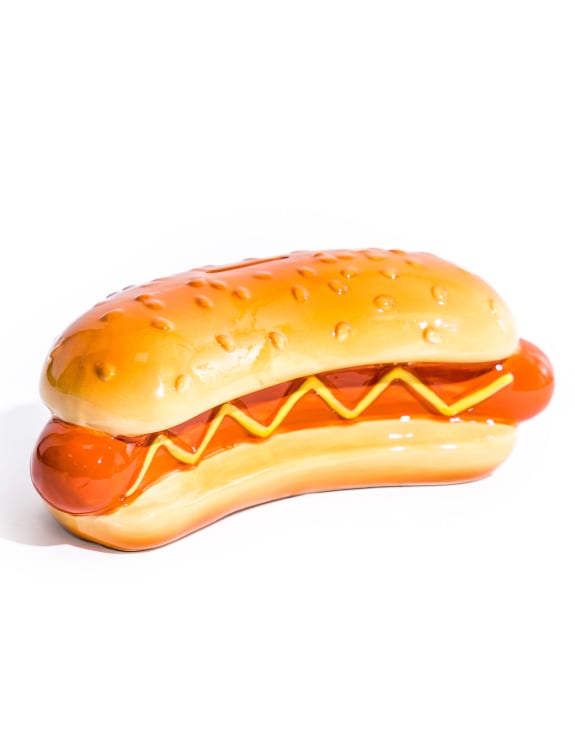 Featuring a hotdog design with a coin slot for change, you can celebrate your favourite fast food fare or give a friend or a loved one a gift that is sure to make them smile.