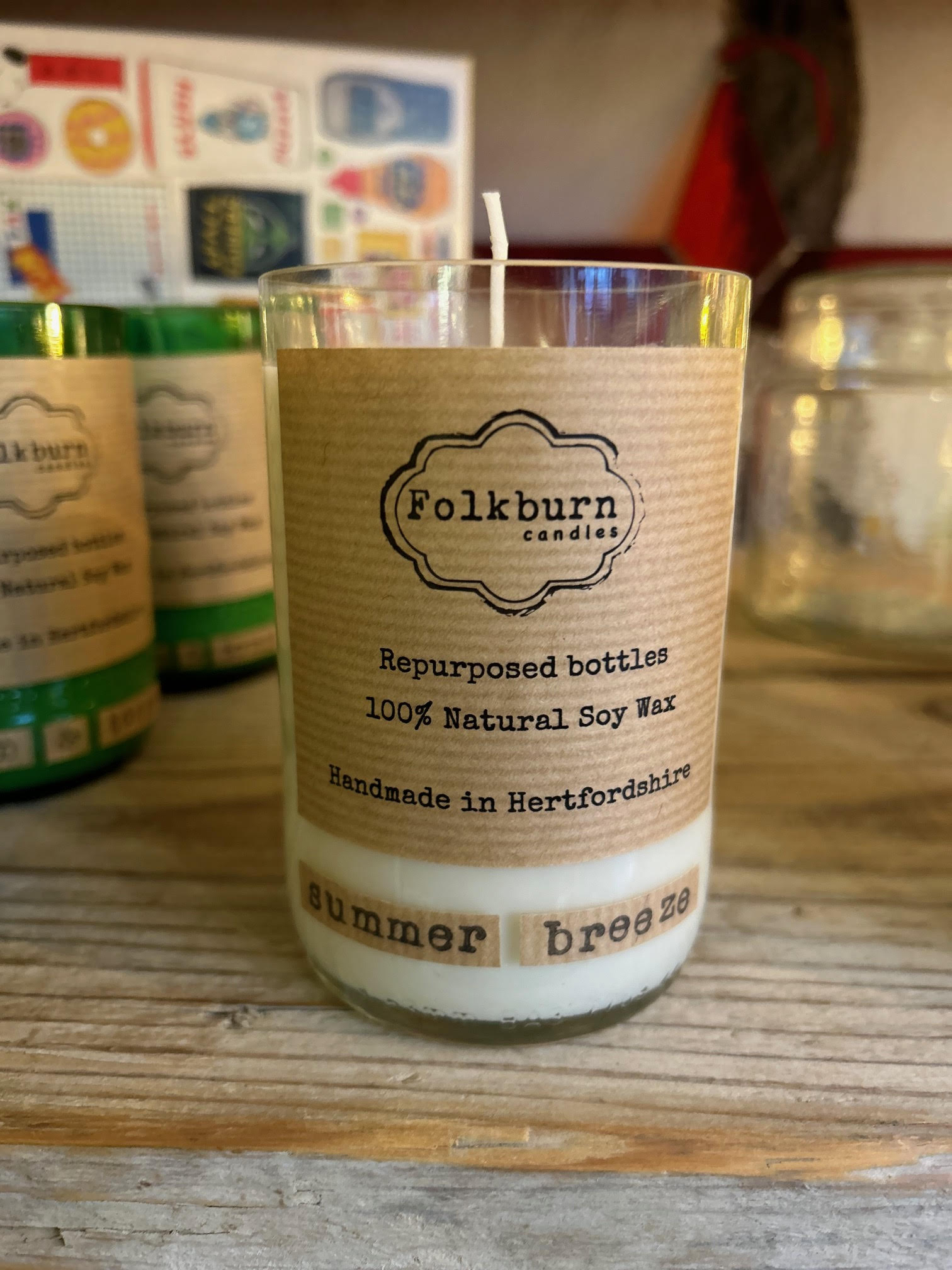 Each candle is unique and made from a recycled and repurposed  wine bottles.